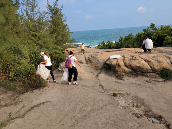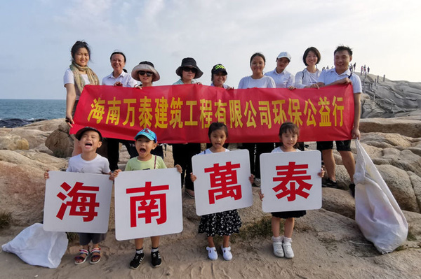 2019年10月20日,海南万泰十余员工利用周末时间自发组成环保义工队,前往文昌铜鼓岭石头公园海岸线开展“守护蓝色海岸,我们在行动”的主题环保公益活动。以实际行动守护地球,为保护环境发声。