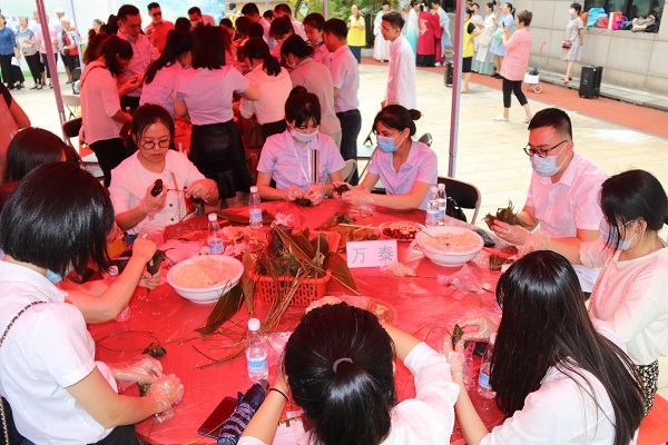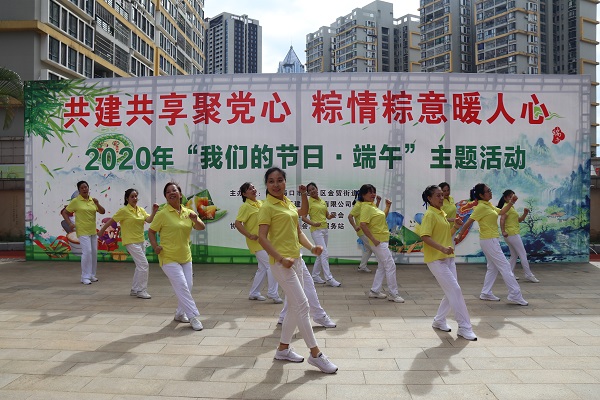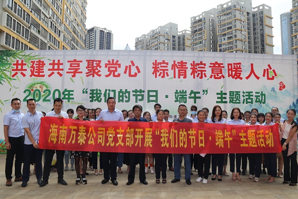 为弘扬中华民族传统文化、传承道德风尚,丰富端午节日文化内涵,促进企业文化建设,履行企业社会责任,6月16日下午,海南万泰在公司党支部引领和工会支持下,携手金贸街道工委开展了“共建共享聚党心 粽情粽意暖人心”我们的节日·端午主题活动。来自公司党员、各部门50多名员工,同街道、社区工作者及居民共100多人参加活动。大家欢歌载舞、包粽子、话家常、送温暖,让党员、员工共同感受节日气氛和企业大家庭的关爱。