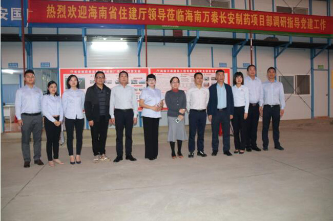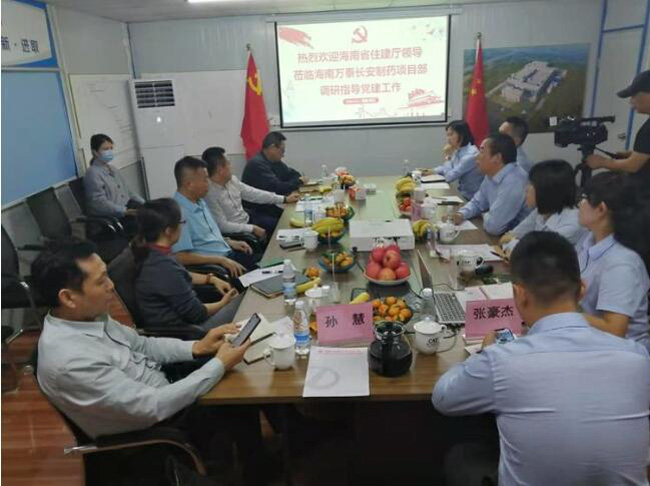为迎接中国共产党建党100周年,省住建厅组织开展以“加强党建联系点宣传,迎接建党100周年”为主题的党建工作调研活动。12月2日,省住建厅行业党委专职副书记李述朝、省住建厅办公室副主任杨洲、省建设工程质量安全监督管理局副局长刘长征、中国建设报海南记者站站长王传东、信息协会总工程师潘吉祥等一行莅临海南万泰建筑工程有限公司承建的长安制药美安科技新城新厂建设项目,座谈交流党建工作经验做法,促进党建工作提升。海南万泰常务副总颜利、副总经理吴坤芳、总经理助理曹珊珊、党支部副书记孟晨、长安制药项目部临时党支部书记张蕾等人参加了本次座谈会。