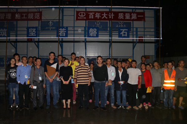 晚上七时许,博泰花园项目部已挤满了参会的工人。八点,安全教育专题会正式开始。工程部人员通过幻灯片展示,结合实际案例,向现场的工人进行详细讲解。