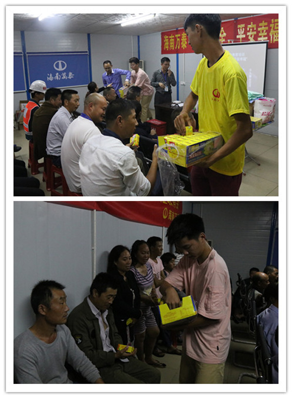 (公司为项目工人送去洗漱用品、饮料等一批慰问物资)