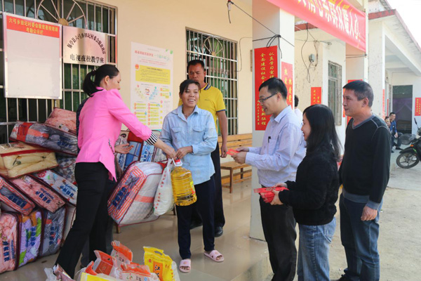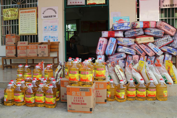 (现场发放爱心扶贫物资)