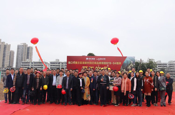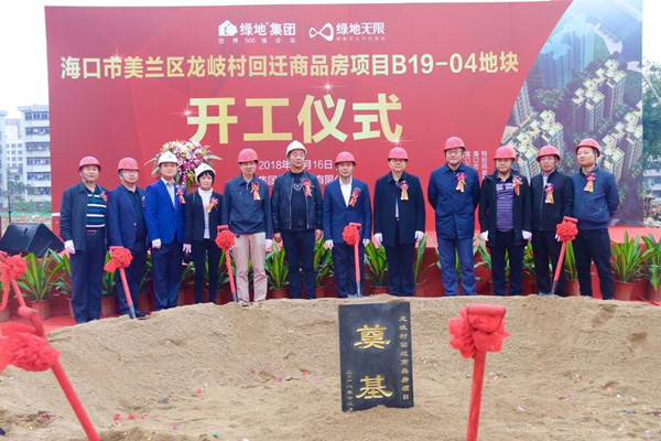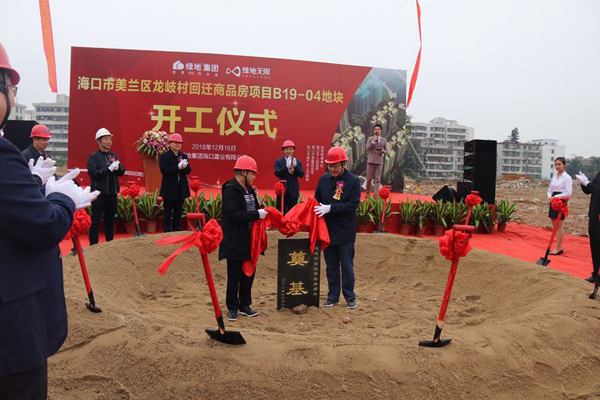 2018年12月16日上午10点18分,龙岐村项目B19-04地块开工仪式在大英山东四路和大英山东二街交汇处隆重举行。??谑姓魇站指本殖ね趸裕览记舜蟾敝魅?、龙岐指挥部指挥长刘慧义,龙岐指挥部副指挥长谭显知,绿地海南事业部工程总监赵四清、合约部总监陈梅、城市更新部总监、龙岐项目总经理魏和平、贵州建工集团有限公司副总经理李小峰、龙岐项目部负责人张小龙、海南建工集团原董事长曹书明及美兰区房屋征收局、项目指挥部、建设单位工作人员代表参加开工仪式。