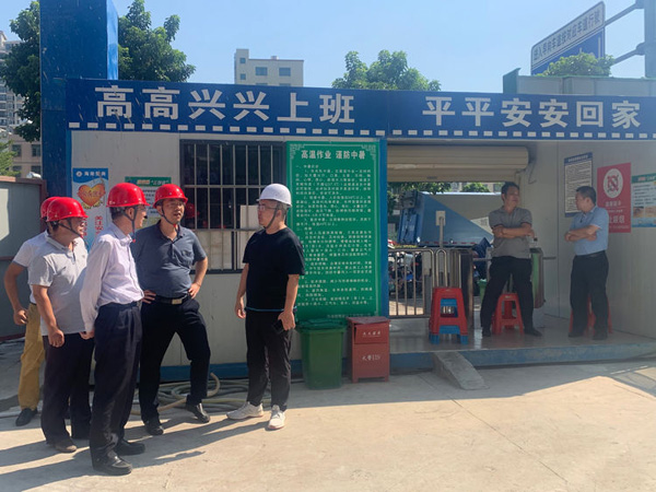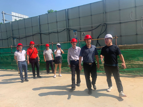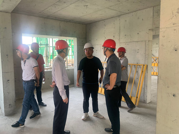 “国检”检查组的工作人员在张小龙总经理的带领下在博大·锦绣滨江工地进行实地检查。
