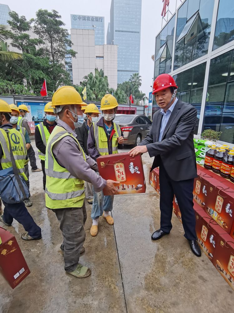 刘志伟副主席在讲话中表达了对节前仍奋战在岗位一线的工友们的感谢之情,他强调,保障好职工的权益是工会组织的重要任务,工会组织要始终把企业职工的生活冷暖放在心上,想职工所想,急职工所急,尽最大努力为他们办实事、解难事,解决他们在生活中遇到的实际困难,不断增强职工的幸福感和获得感。同时,他也希望广大工友们都能够在海南自贸港的大背景下努力奋斗,尽职尽责,共同为这片广阔的土地添砖加瓦,打造优质工程,描绘宏伟蓝图。