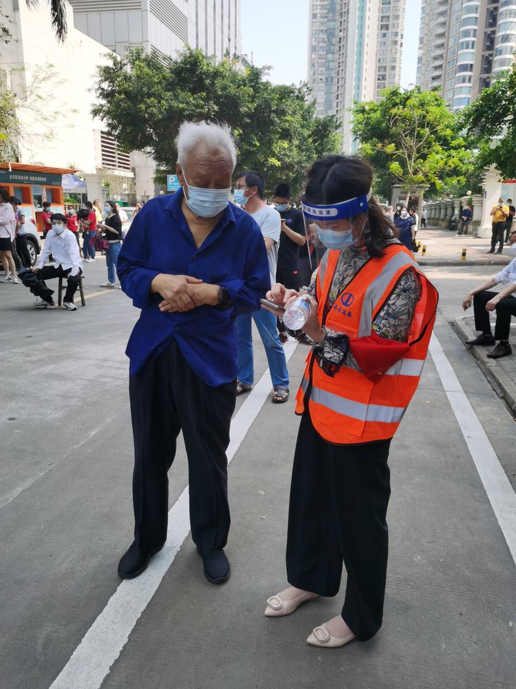 不忘初心,肩负担当。4月6日,龙华区政府进行了主城区全员核酸检测工作,在公司常务副总颜利的带领下,公司员工分批次,有秩序, 有组织地奔赴金贸街道辖区内的置地花园、电力村、??谕?、百方广场等区域核酸检测点,协助开展核酸检测工作,做好现场秩序维护?!扒氪蠹壹涓?米排好队”“请戴好口罩,提前打开健康码”……从中午到晚上9时,海南万泰公司的员工坚守岗位尽职尽责,维护好核酸检测人员队伍秩序,耐心解答群众的疑问,安抚焦急等待的心情,帮助群众操作健康码,引导老人、孕妇优先检测,充分彰显了无私奉献的志愿精神。