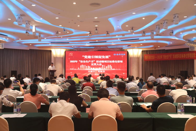 人间最美五月天,朝气蓬勃冲云霄。为做好党建引领,促进企业发展,在第21个全国“安全生产月”来临之际,围绕“遵守安全生产法,当好第一责任人”及“规范项目标准化管理”的活动主题,5月15日,海南万泰集团在??诒频瓿晒φ倏说辰ㄒ齑俜⒄埂?022年“安全生产月”暨项目标准化管理宣贯大会。集团常务副总经理颜利、副总经理张宇等公司主要领导、部门负责人及各在建项目部项目经理、资料员、安全员近130人参加了本次会议,海南省建设工程质量安全检测协会秘书长纪扣宝应邀出席会议,本次会议由副总经理吴坤芳主持。