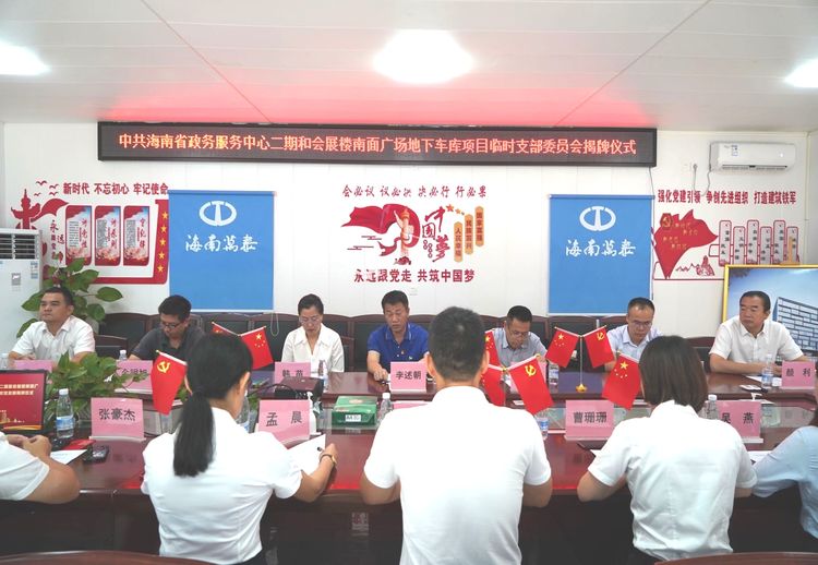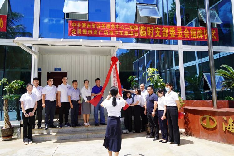 为进一步提高党组织在基层的影响力,增强党组织在项目工地上的凝聚力,贯彻落实“项目建在哪,支部就设在哪”的理念,经海南省住建行业党委的批准,2022年6月24日,万泰公司承建的省政务服务中心二期和会展楼南面广场地下车库项目临时党支部揭牌仪式暨为一线工人送“清凉”活动在项目部现场圆满举办。受海南省住建厅领导的委托,省住建行业党委专职副书记李述朝、省住建厅质安处副处长韩苗、省质安局副书记刘长征莅临现场指导揭牌仪式并参加为一线工人送“清凉”活动。公司党支部书记曹珊珊、常务副总经理颜利、副总经理吴坤芳,项目临时党支部书记吴燕等相关人员参加了本次活动,仪式由公司党支部副书记孟晨主持。