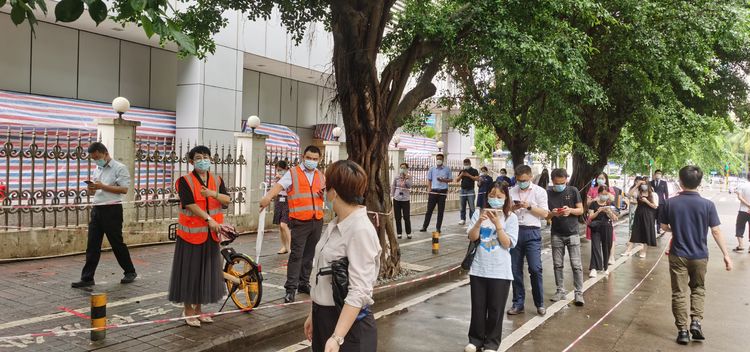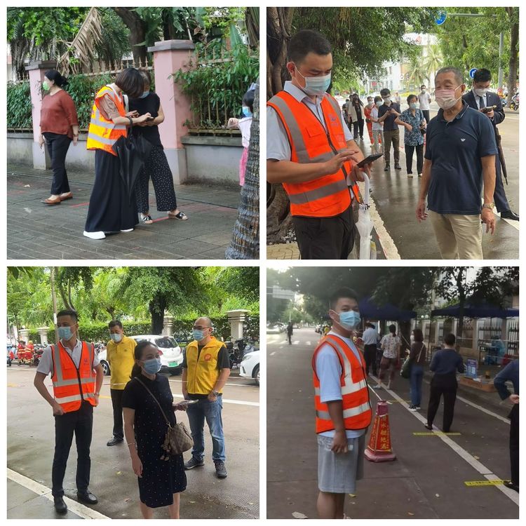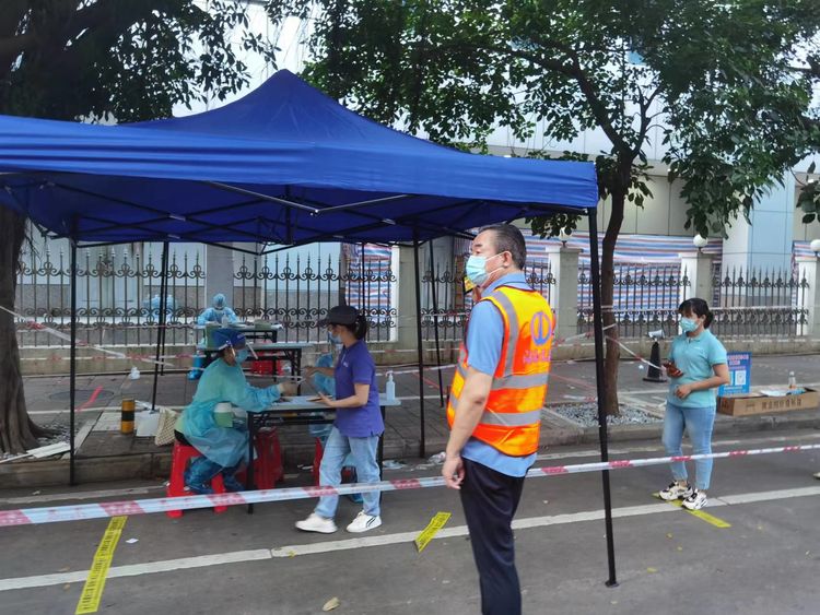 本次疫情突如其来,核酸检测工作时间紧迫,党员志愿者们克服困难,到达指定点位开展协调工作?!澳茫氚此承蚺藕枚?,保持一米距离;请大家提前打开健康码,避免网络拥堵影响检测;你看这里就可以打开健康码;请佩戴好口罩……”秩序维护、测量体温、提供咨询引导、解决群众困难、带领孕妇及行动不便的老人走绿色通道等等,从中午到晚上,大家各司其职,与医务人员并肩作战,为检测现场“保驾护航”,赢得了群众的认可与好评。