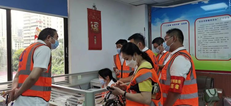 当好“守门人”,社企同心保家园。疫情防控期间,海南万泰志愿者队伍帮居民送菜送饭、拨打电话进行流调、值守临时监管区域等,在街道办办公室内拨打流调电话,为滞留海南的人员及有困难的人员提供咨询服务,并提醒按要求做核酸检测,当医护人员紧缺时还要穿上“大白”进行扫码、运送物资。海南万泰志愿者们始终冲在一线,为街道社区筑起了一道道坚实的战“疫”防线。