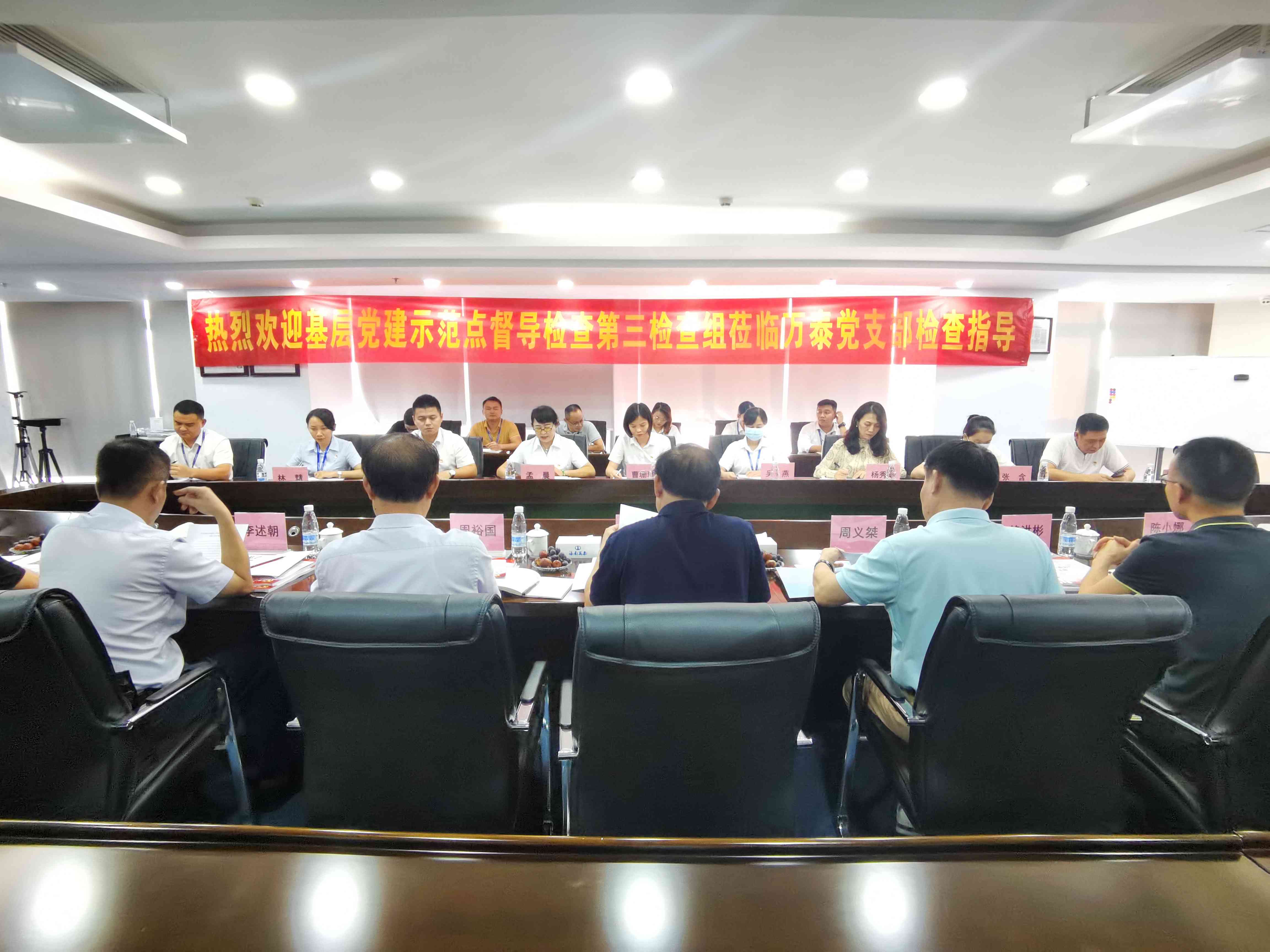 为进一步推动基层党组织工作的开展,巩固基层党建示范点创建活动成果,确保年度创建目标如期完成,2022年10月9日,省委两新组织工委基层党建示范点督导检查第三检查组组长韩畴、省住建行业党委专职副书记李述朝等一行莅临海南万泰,对公司党建工作进行检查指导。海南万泰党支部党员、发展对象和入党积极分子一同参加了本次会议。