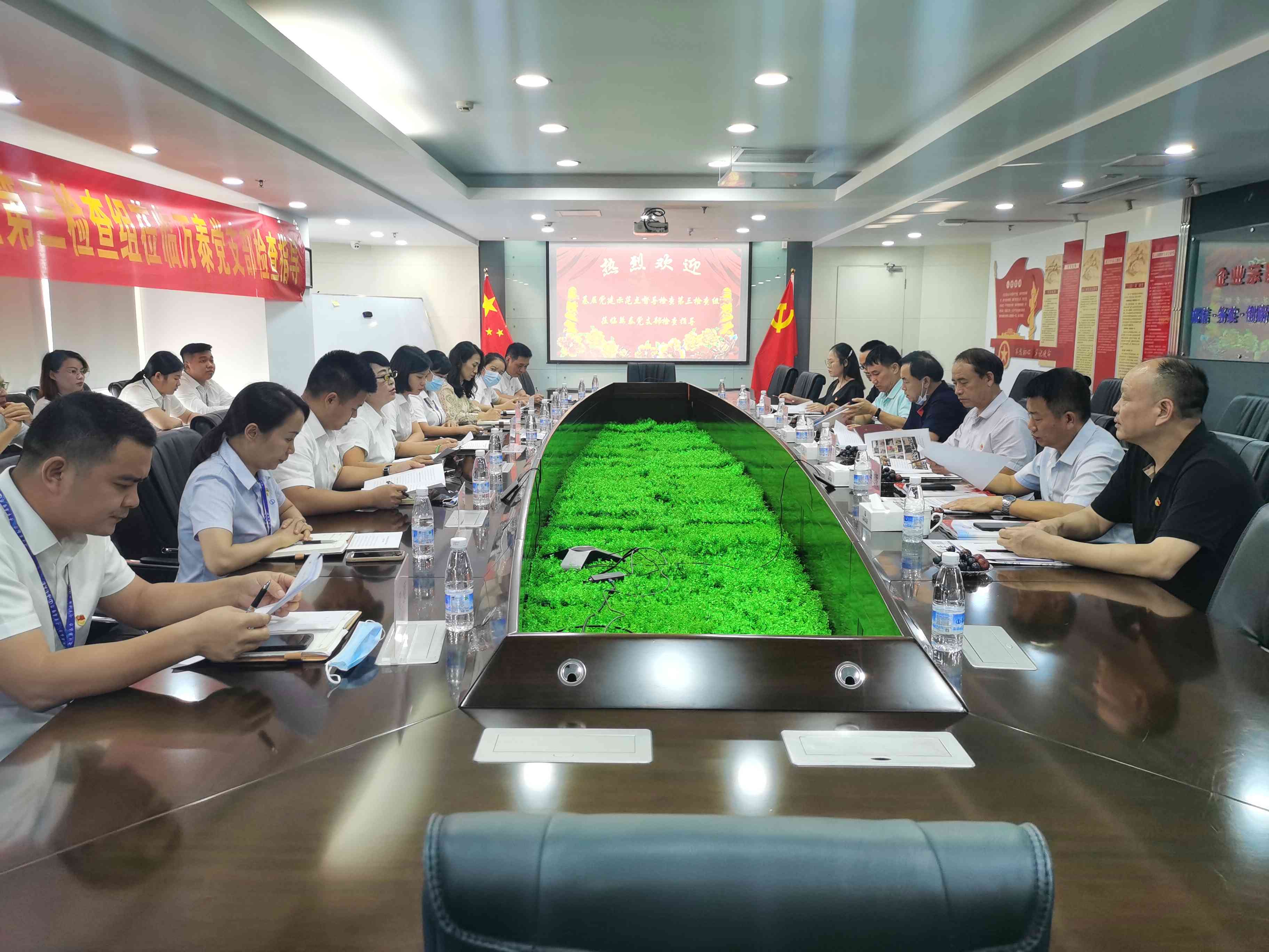 省住建行业党委专职副书记李述朝主持会议并向检查组各位领导介绍了海南万泰党支部近年来在“领导班子重视”“党建融合主业”“履行社会责任”等方面工作的开展情况及取得的成绩。万泰党支部副书记孟晨向检查组一行汇报了公司近年来的党建工作,分别从“领导班子建设”“党员队伍建设”“工作机制建设”“工作业绩呈现”“群众反映”等方面进行了汇报,并表示感谢省委两新组织工委和省住建行业党委一直以来的关心和支持,海南万泰党支部将会再接再厉,始终不忘初心、主动担当,围绕党建工作与公司业务相融合的主题,以思想建设为引领,培育壮大党员队伍,不断发挥党员先锋模范带头和人心凝聚的战斗堡垒作用。