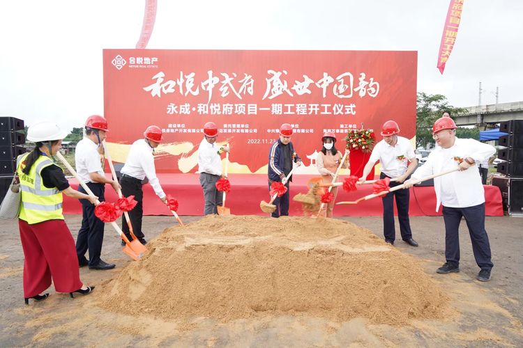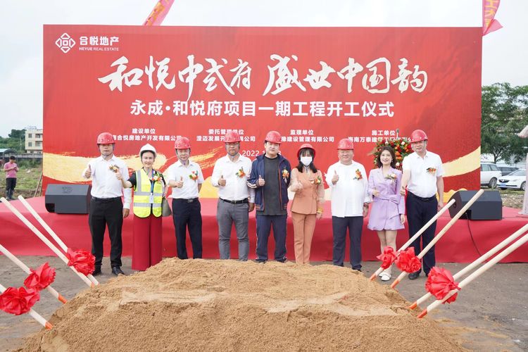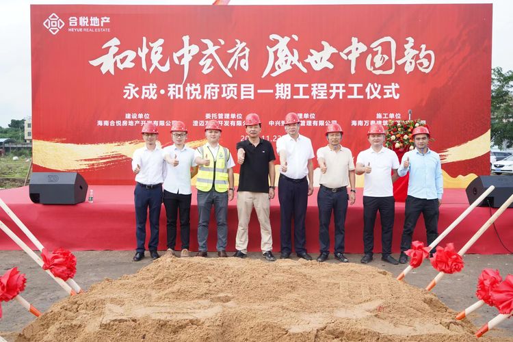 随后,建设单位海南合悦房地产开发有限公司杨总正式宣布永成?和悦府项目(一期)开工。伴随着隆隆的礼炮声,杨总、颜总等相关领导为项目开工培土奠基,预祝项目开工大吉。