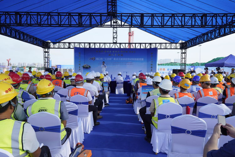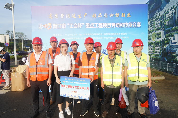 为进一步弘扬劳模工匠精神和发挥职工先进示范带头作用,推动企业高质量发展 ,9月28日上午,由??谑凶芄せ帷⒑?谑蟹⒄垢母镂被?、??谑凶》亢统窍缃ㄉ杈种靼欤?谑薪ㄖ敌?、中海实业有限责任公司、中化学建设(海南)有限公司承办的2023海口市劳动技能竞赛-建筑行业技能比赛,在由中化学建设(海南)有限公司承建的中国海油深海能源开发总指挥部基地项目01地块项目部隆重举行。来自海南万泰建筑工程有限公司、中化学建设(海南)有限公司、中国建筑第五工程局有限公司等9家海南省建筑业企业,共计110名参赛选手同台竞技,互相角逐,赛出水平,展现风采。海南万泰公司总经理颜利、党支部书记曹珊珊及总经办、工程部、综合部有关人员参加本次活动。