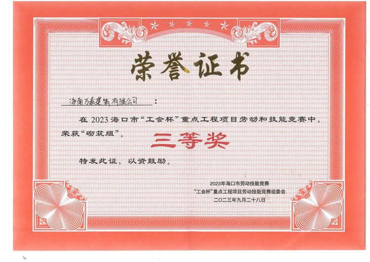 本次技能大赛为建筑工人搭建了很好的学习交流平台,既是对各参赛企业职工劳动技能能力的一次检阅,又进一步提升了工友们的专业技能。下一步,海南万泰公司将继续引导全体职工树立“奋勇拼搏,建工自贸港”的崇高理想,发扬团队合作精神,以昂扬的斗志、求实的作风、精湛的技术为企业的高质量发展贡献新能量。