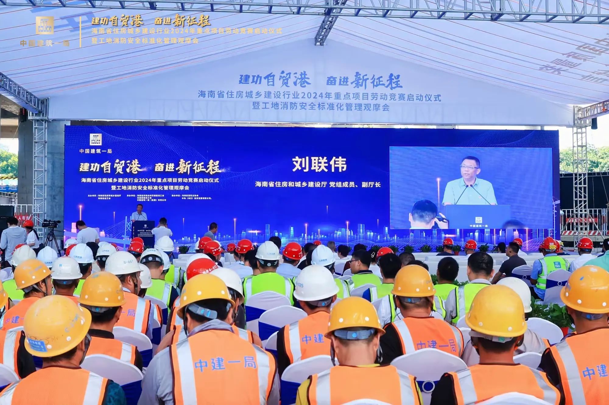 省住建厅副厅长刘联伟在启动仪式的讲话中表示,举办此次劳动竞赛是围绕省委省政府中心工作,积极服务海南经济建设的重要举措,旨在激励全省广大职工学习贯彻习近平新时代中国特色社会主义思想和党的二十大精神,充分发挥劳动竞赛在围绕中心,服务大局,助推经济社会发展中的积极作用,激励住建行业企业和广大建设者为高质量高标准建设海南自由贸易港建功立业。