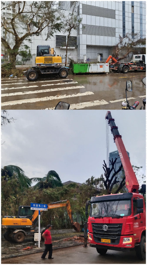 9月10日,海南万泰公司组织近10名由党员、职工组成的志愿服务队伍,并调配吊车1台、轮式抓机1台运输车辆2台、清障物品一批分批前往五源河公园、龙华区金海路开展路障清理志愿服务活动。