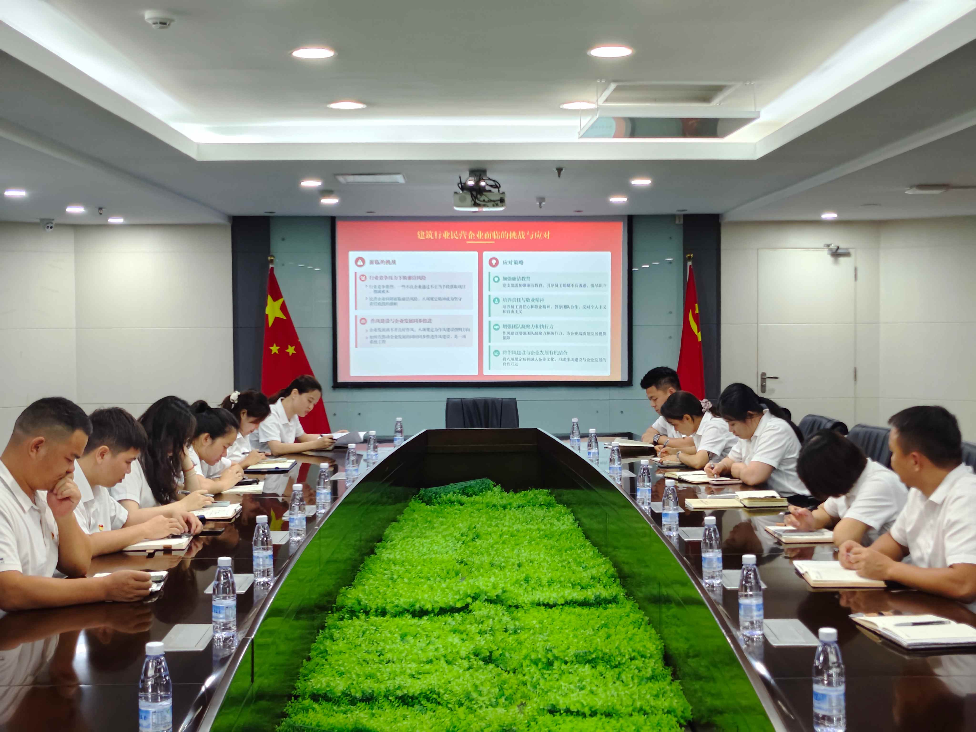 会议伊始,主持人阐述了本次书记讲党课及学习的意义,强调了深入贯彻中央八项规定精神对于企业健康发展的重要性。随后,党员林慧、莫方龙分别领读了《习近平关于加强党的作风建设论述摘编》相关章节内容。通过学习,让与会人员对习总书记关于党的作风建设的论述内涵有了更深入的理解。