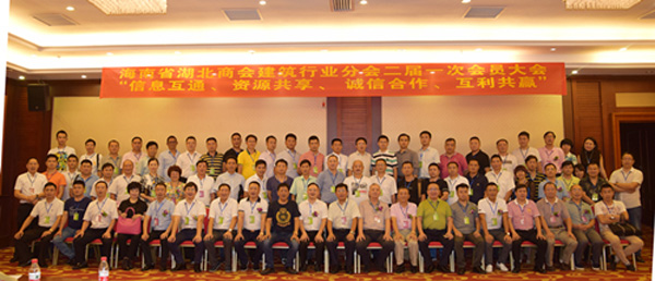 2016年9月24日下午4时,海南省湖北商会建筑行业分会换届暨二届一次会员大会在香江温泉国际大酒店召开。海南省湖北商会是由在琼的湖北企业自愿联合发起成立、并经海南省民政厅核准登记的非营利性社会团体。建筑行业分会是其下属的分支机构,以建筑施工总承包为主、涵盖建筑设计、招投标、预决算、工程担保、建筑劳务、工程监理等为建筑行业产业链的专业分会。
