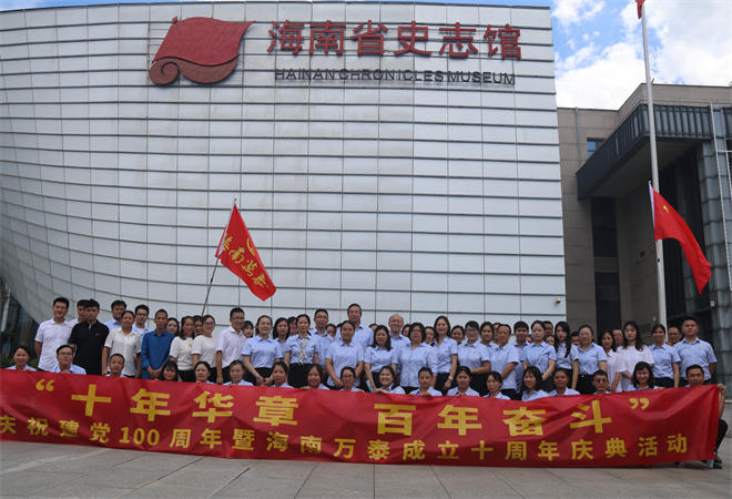 6月16日,海南万泰庆祝建党100周年暨公司成立十周年庆典活动圆满举办。活动以“十年华章,百年奋斗”为主题,组织全体党员、职工前往海南省史志馆参观学习及到中视影院进行红色教育主题党日活动。