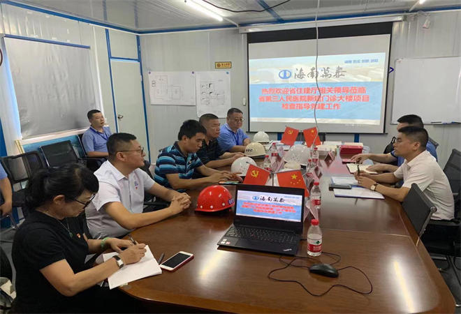 日前,海南省质安局杨处和郭科长一行到我司承建的海南省第三人民医院新建门诊大楼项目部调研检查党建联系点建设及支部党建工作开展情况,并现场对项目建设进行了调研指导。