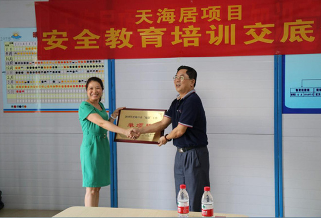 2016年4月5日下午,??谑?ldquo;双创”工作领导小组对2015年??谑?ldquo;双创”工作中涌现出的先进集体和个人进行表彰。由万泰公司承建的“天海居”项目作为“双创”示范工地,在“除四害、病媒防治”方面表现突出,荣获2015年“双创”工作典型示范单位单项奖。